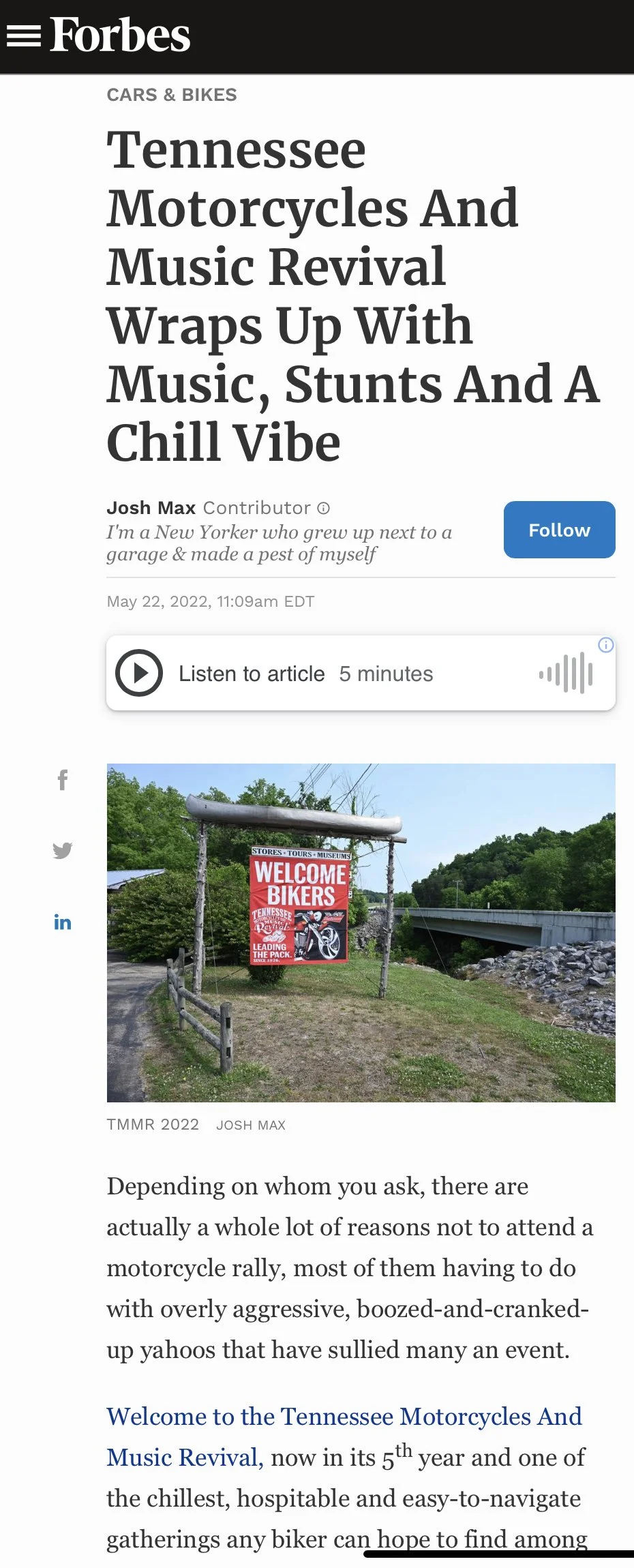 Promoted new growth on social media with 618%+ growth in accounts reached online in 2022 and 876% growth in accounts reached in 2021 reaching millions of highly targeted industry-specific people online. Obtained double back-to-back shout-out posts from world’s most recognizable motorcycle brand “Harley Davidson” during the 2022 event which included proper tags on social media. Forbes wrote two articles about TMMR in 2022 which are linked down below.